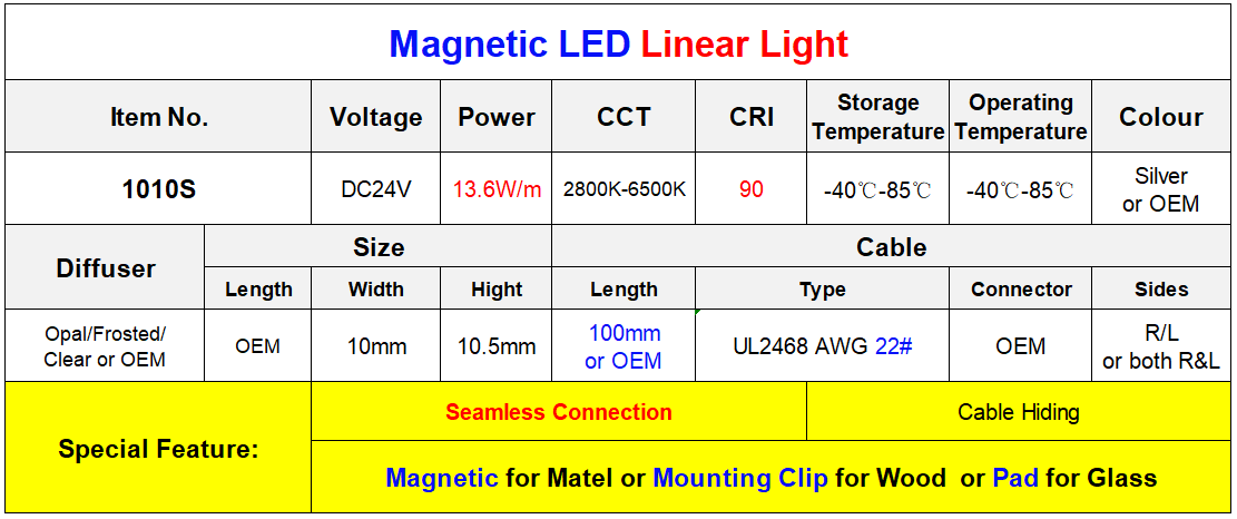 Slim magnetic led bar 1010, led shelf light under cabinet